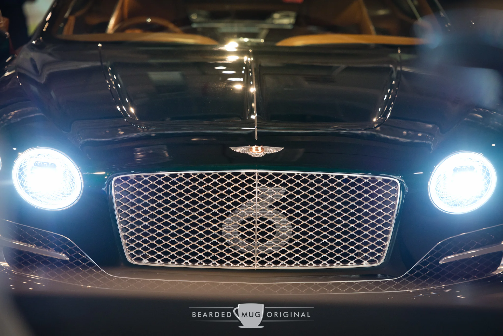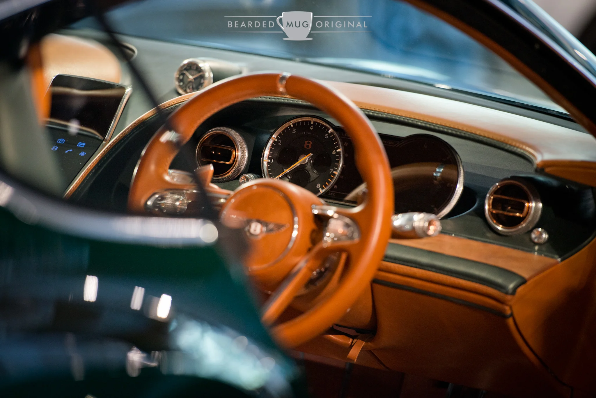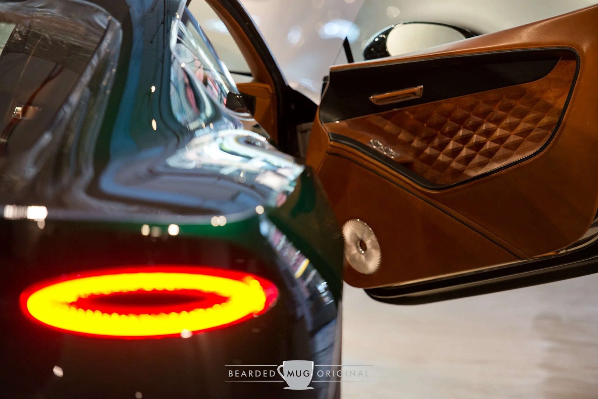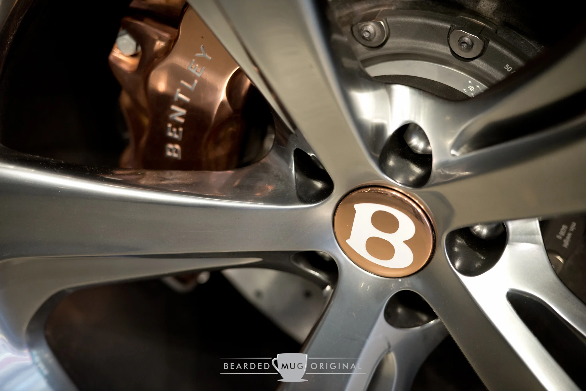 The '6' in the grille reminded me of a Bentley Blower who had the number '8' painted onto its radiator. The copper accenting is seen as the backdrop for the winged 'B'.