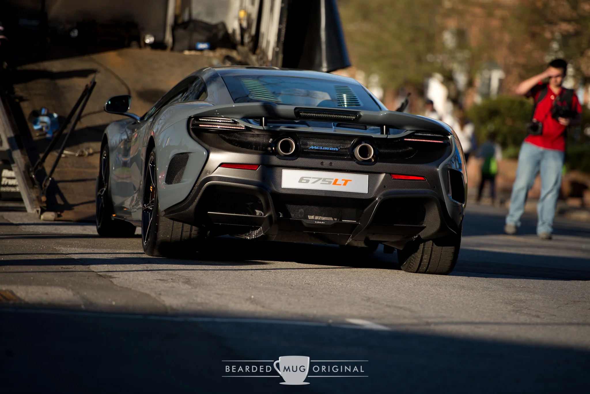McLaren's limited-production 675 LT is being off-loaded to an awaiting crowd of one eager photographer.