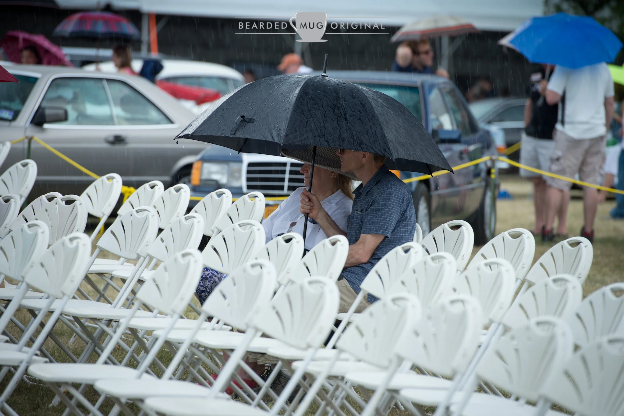 There was something oddly satisfying in seeing the field of show cars being covered in nature's tears.