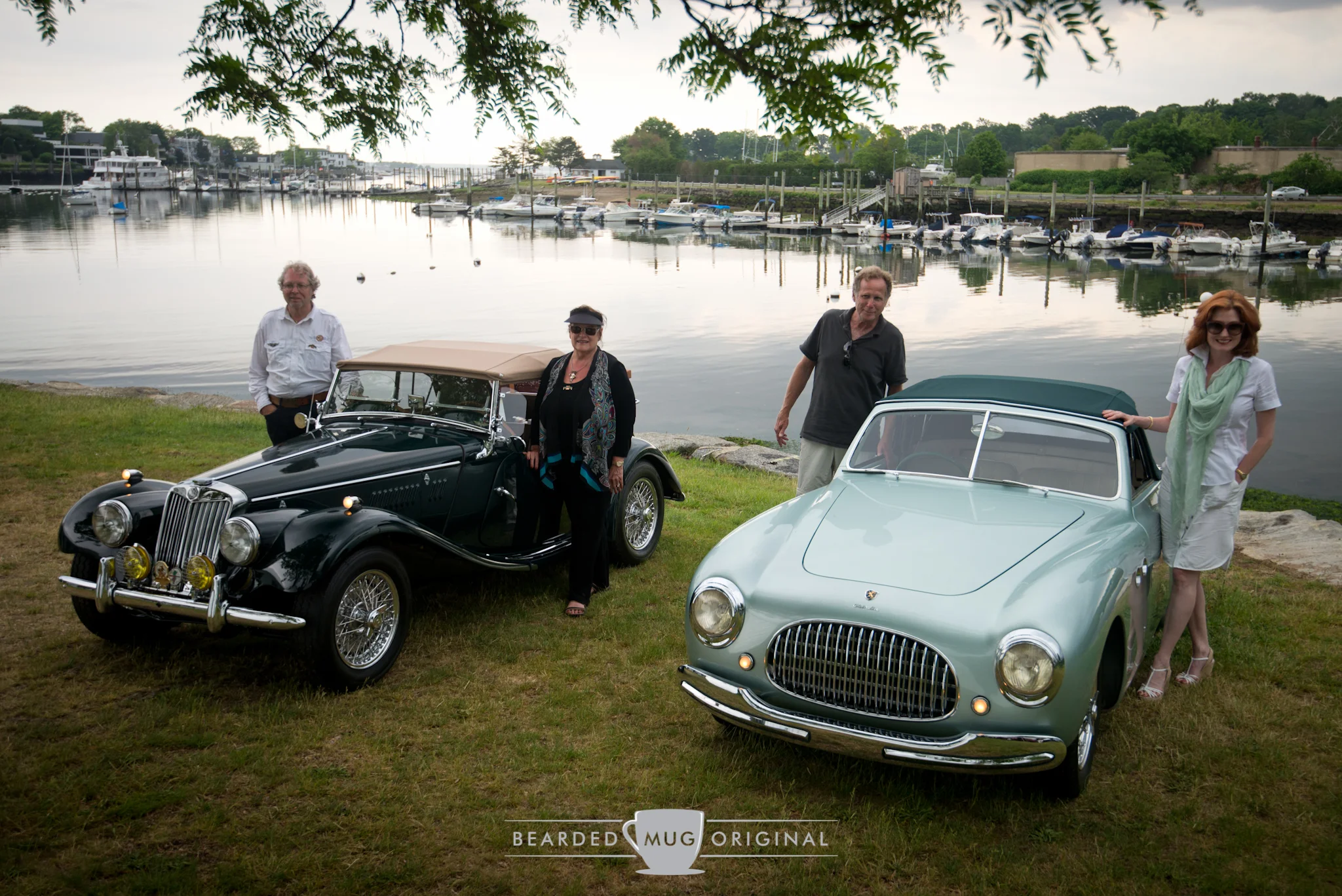 The post-show production to get the winners photographed on the banks of the Greenwich Harbor was quite comedic on both days. The cars were crammed onto a small patch of grass overlooking the water, with the positioning of the cars being less than ideal. The quickly fading sunlight was trying to be remedied by an inadequate reflector, a feeble attempt to fill shadows and make the chrome shine even more. It was even worse on Sunday, when the incoming storm prematurely sapped the daylight right under their noses. The auction tent's rear white picket fence was deconstructed to declutter the background, and once the photographer's shutter had been pressed what seemed like half a million times, the image was still not up to snuff. Then there was the step ladder...In the end, the desired result was achieved and the cars looked fantastic, no matter which way they were facing. That is a trait of a true winner.
