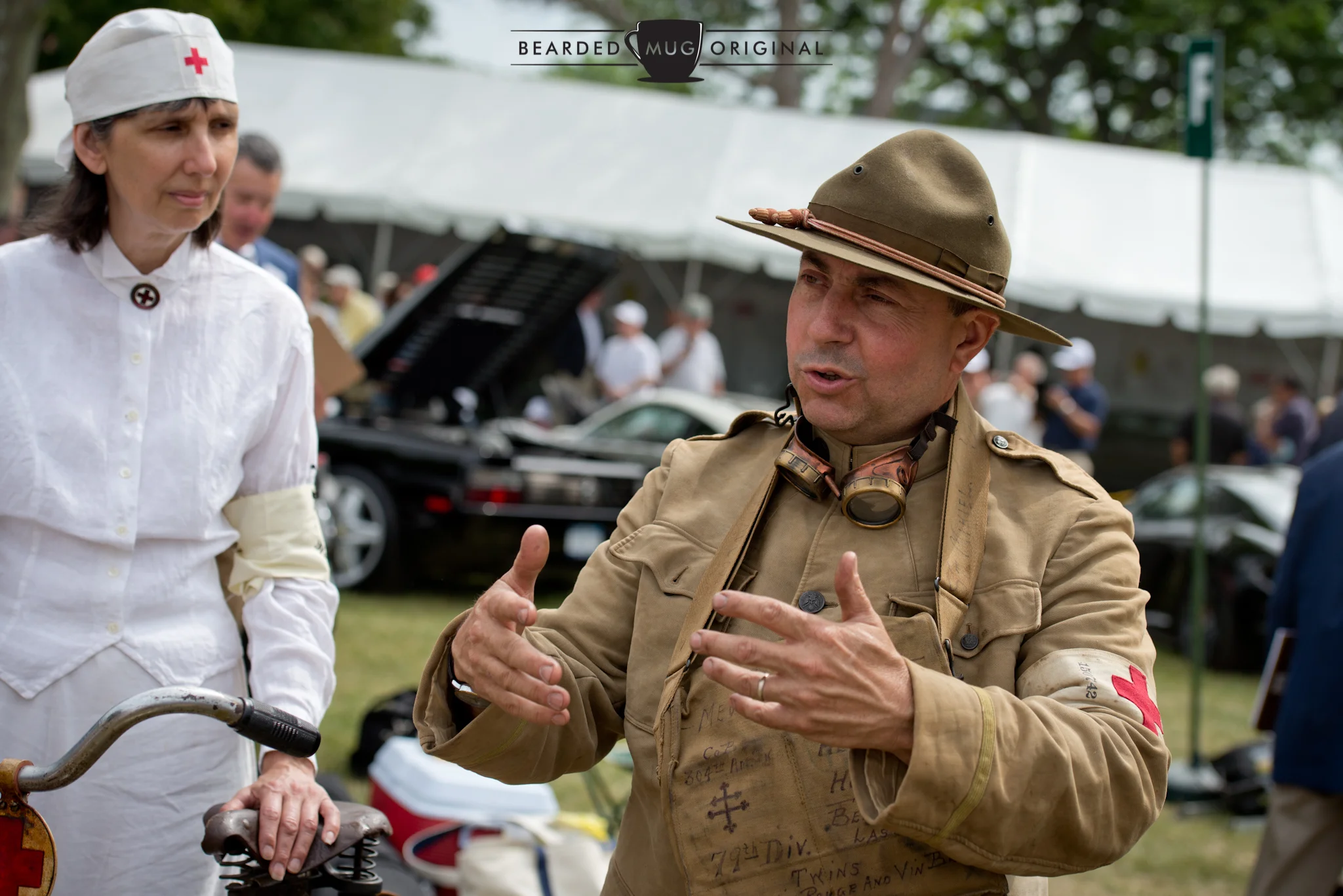 Another great aspect of the show is the diversity of the guests. To me, there are few things more entertaining than listening to a couple of older British folks chatting on about a car in front of them, dropping facts, statistics and anything else that is loaded into their chamber of thought. It's quite the experience. Additionally, the people that dress up in period-correct garb, especially in such warm weather, deserve to be recognized as well. Specifically, there was a group of flappers that came along with a few Ford Model A's that had an entire period-correct spread set up. They had a Victor Talking Machine playing tunes from the times, and would perform dances for all those that happened to walk by. Another impressive display was by a fellow named John who brought his 1917 Triumph Model H motorcycle. He was also decked out in 1917 attire, with his show mate Florence dressed as a period nurse with her 1914 Gritzner bicycle.