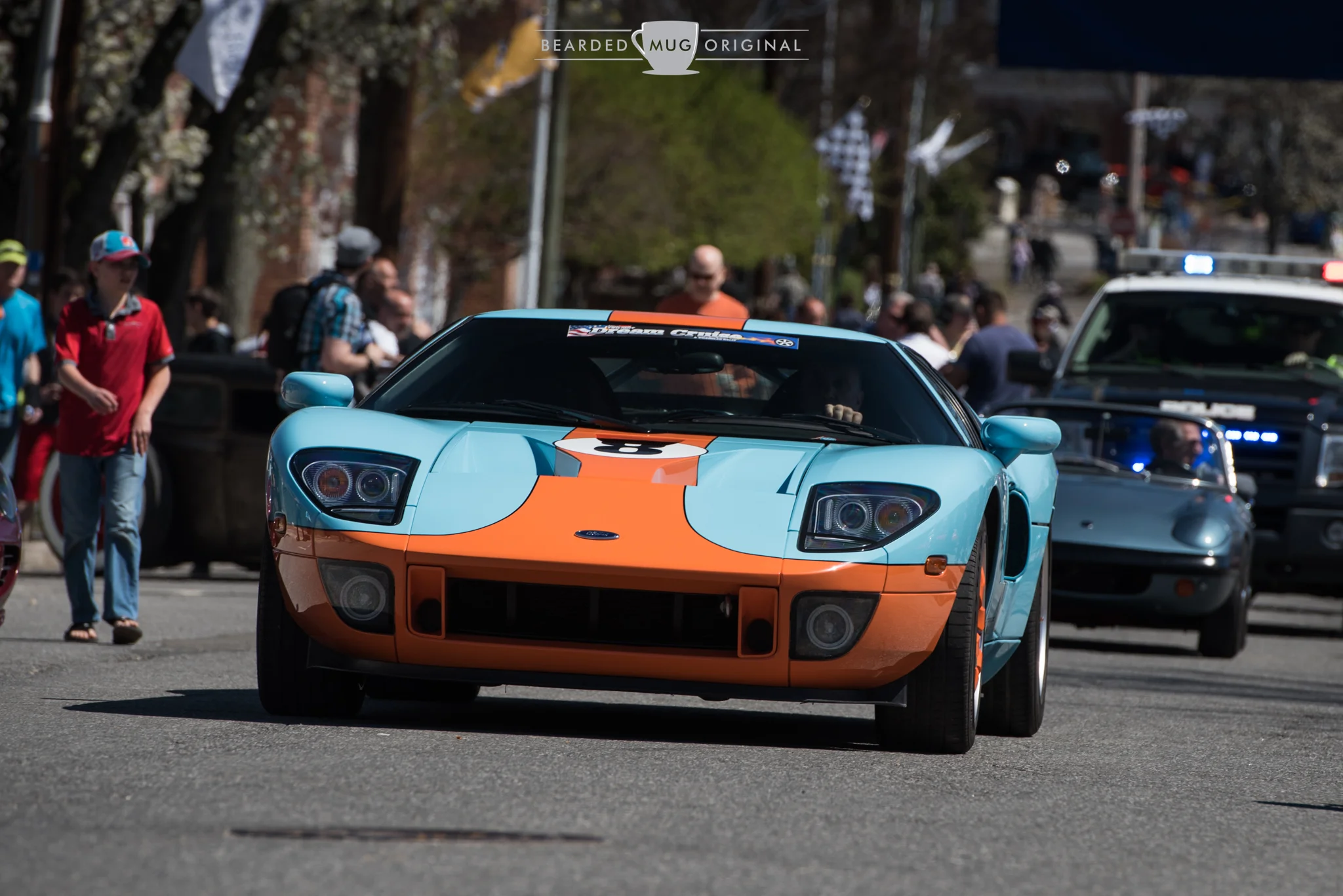 This little red riding Ford, appearing through the mist at last year's Caffeine & Carburetors in Waveny Park, is May's featured car for the 2016 Bearded Best calendar. Since I was unable to locate the owner of this particular car, I figured the next best thing would be to showcase of few of the GTs I have seen in recent years and give my interpretation of what means to be Ford's halo vehicle.