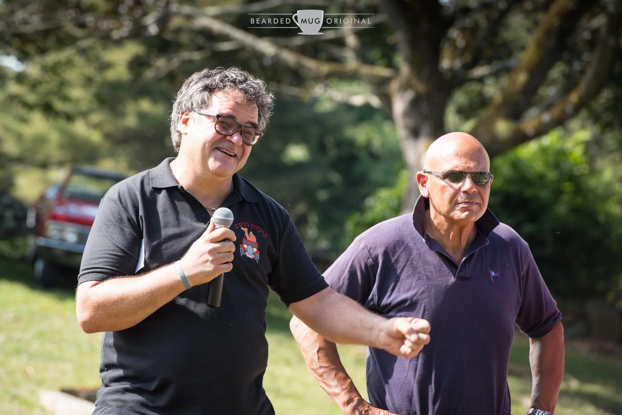 Santo Spadaro, son of Domenico and possessor of one of the friendliest faces, addresses the crowd of over 350 before the cars set off on their journey. Next to him is Mike Bruno, who has played an invaluable role in the Memorial Drive over the years.