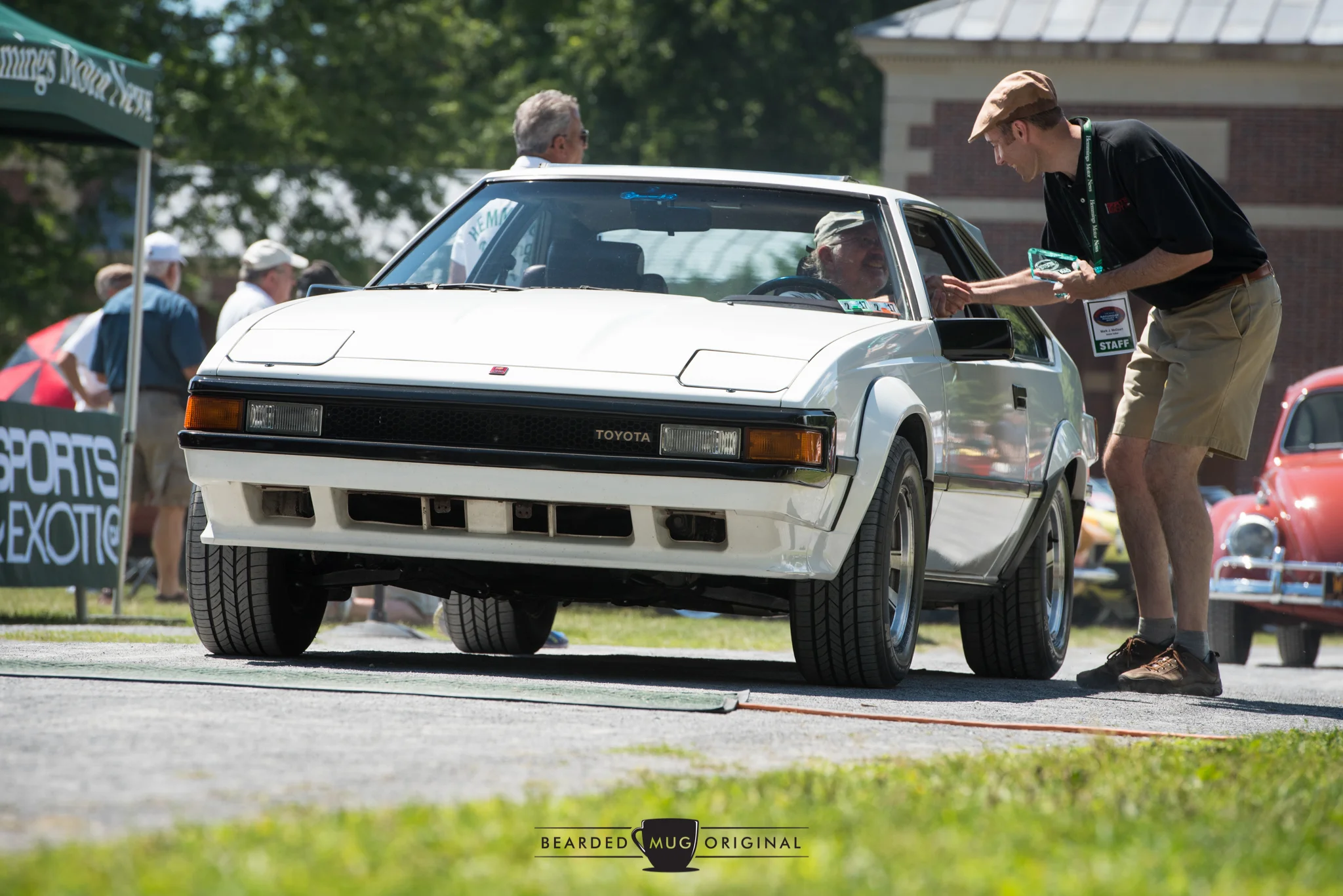 Even though the sputtering of the raindrops ceased as I entered the showground, the clouds continued to hover throughout the morning. Which, when it comes to car shows and cars showing up, is twofold. On one hand, the clouds were a great way to diffuse the overpowering sunlight that can cause unfavorable shadows in photographs. However, when people see clouds in the forecast, let alone rain, they start to second-guess their attendance. Regardless of the latter, the line of cars entering the park was a steady stream all morning. One thing I kept keen on, was how many other Toyotas were lining up next to mine. I had managed to convince (with very little effort, mind you) my buddy Greg to make the trek up. Greg hails from north Jersey as well, but didn't want to set his alarm for the middle of the night to join me on a cruise up. I don't blame him. His 1984 Toyota Celica Supra is one of the cleanest of the marques, and was featured in Hemmings Sports and Exotic Car magazine in one of its earlier issues, as well as a place on the field of the Greenwich Concours d'Elegance back in 2014. You can see it in the background of the cover photo above.