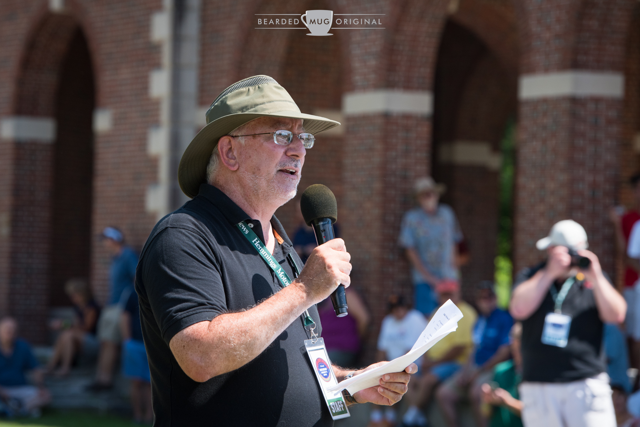Editor Dave LaChance showing off his public speaking skills, while the editor of Hemmings Daily, Kurt Ernst snaps away at the convoy of winners.