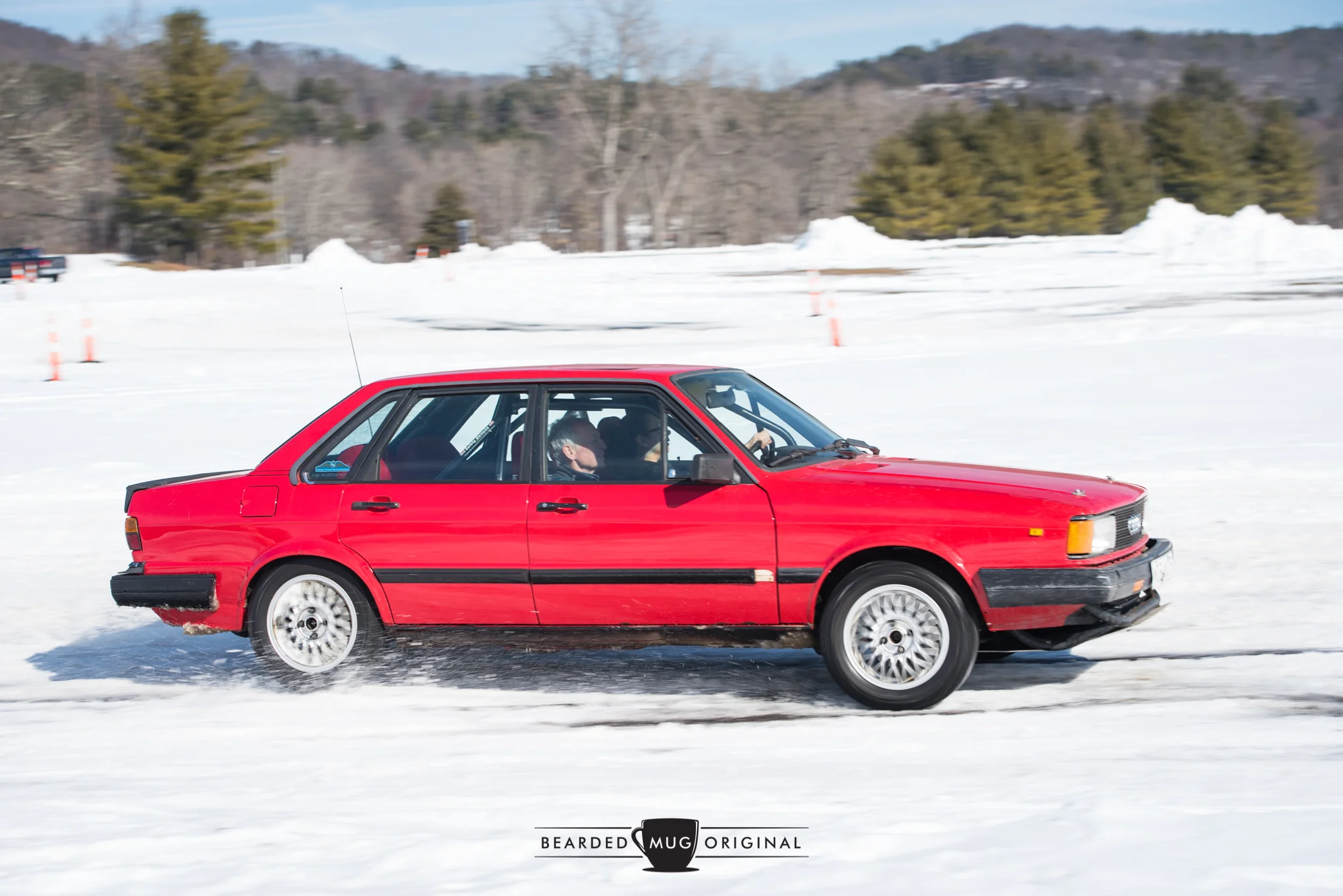 This Audi 4000, with Simon riding shotgun, was built to perform. And perform well it did, with quattro AWD adding grip to otherwise slippery conditions.