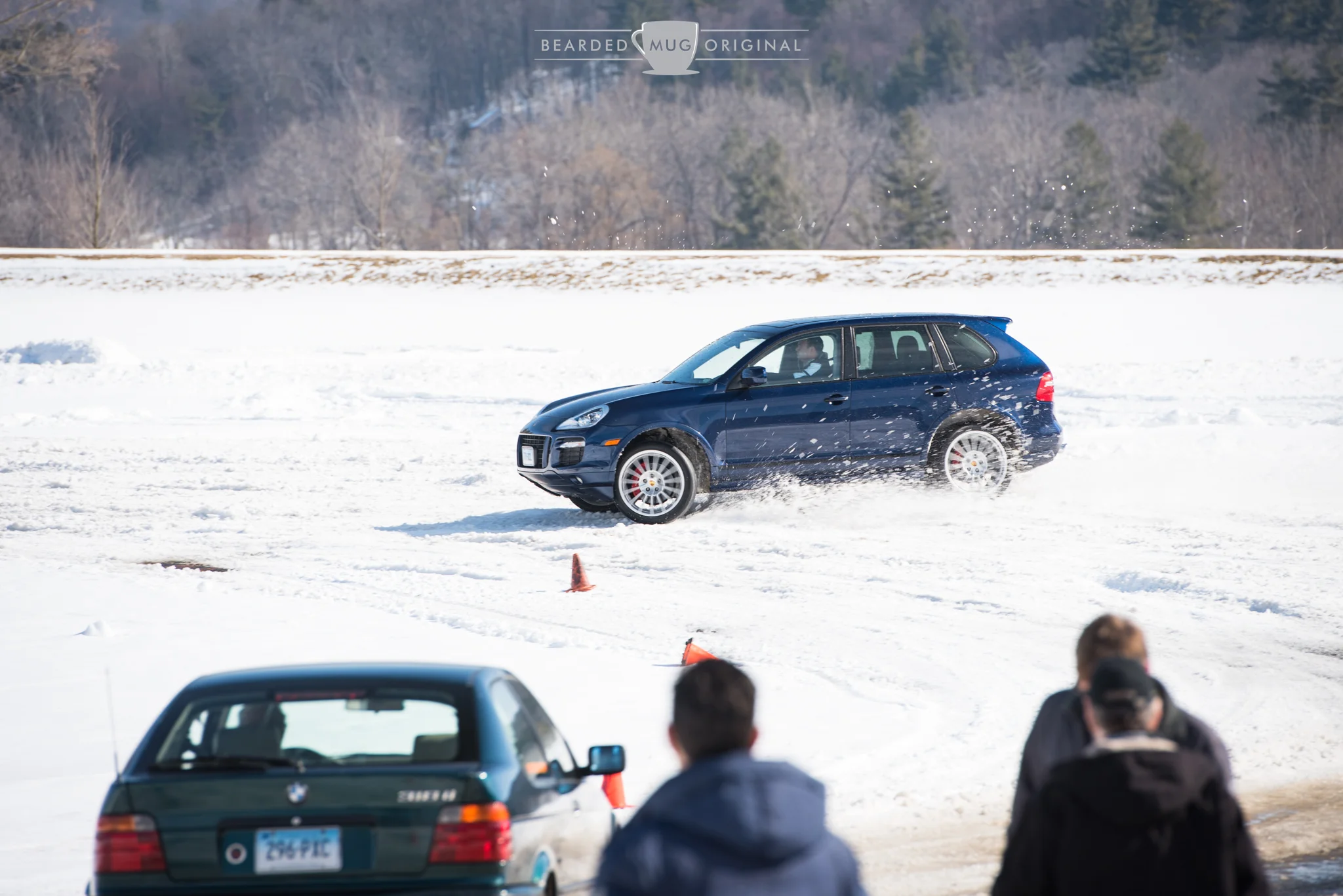 The balance of the morning was spent watching the attendees toss their own rides, as well as those aforementioned E36s, expertly into the corners, spraying snow and slush everywhere, all while smiling brightly behind the wheel. The driver of a midnight blue Cayenne was rumored to perfect his talent by taking his Hellcat around the snow track, working on car control and honing his craft while hooning his car. The way he was able to delicately toss his 4500lb+ SUV around like it was participating in a German ballet was not only applaudable, but downright attention-grabbing. He made it look easy, all while appearing cool as a cucumber at the helm.