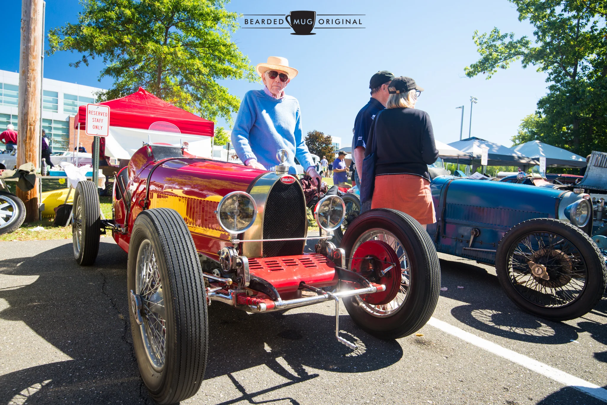 Alden Sherman stands proudly next to his Bugatti Type 35 that he drove himself to the show.